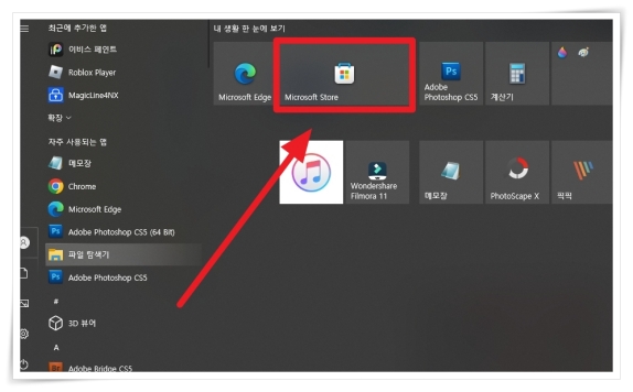 1. 윈도우에서 "MICROSOFT STORE"를 찾아 클릭해 주세요.