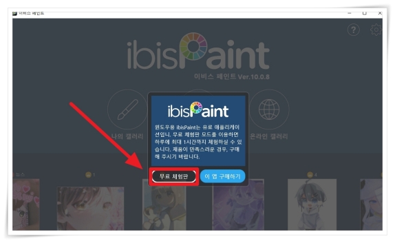 이비스 페인트는 Android 및 iOS 기기에서 모두 설치할 수 있는데요. 최근엔 PC 버전도 출시되어 컴퓨터에서도 작업이 가능해졌습니다. 다만 체험판 버전은 매일 1시간 사용 시간이 제한됩니다.