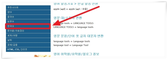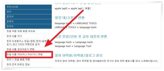 2. 좌측 메뉴에서 "한글 이름 변환"을 클릭해 주세요.