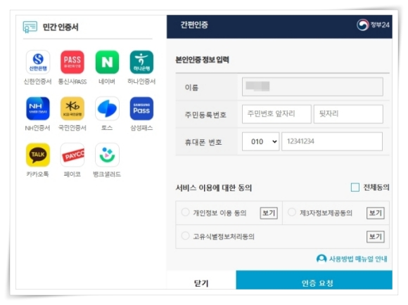 4. 간편인증을 통해 본인인증을 진행해 주세요.