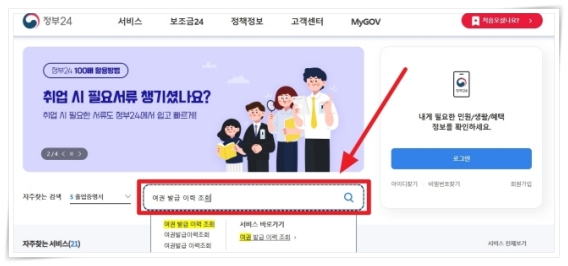 1. 홈페이지 중단 검색창에 "여권 발급 이력 조회"를 입력해 주세요.