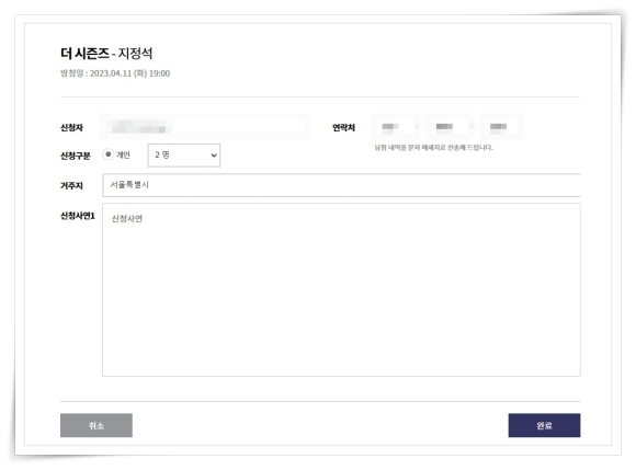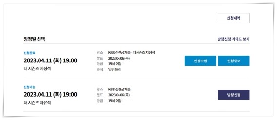 더시즌즈 방청 신청 방법