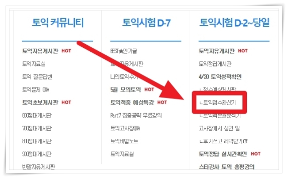 2. 메뉴에서 "토익점수환산기"를 클릭해 주세요.