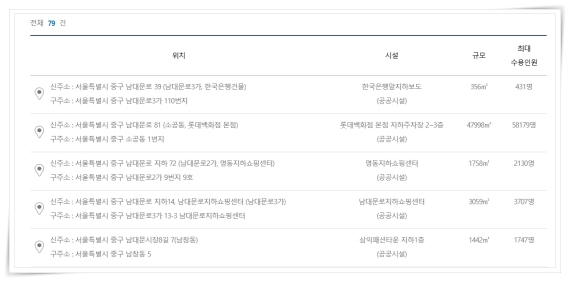 3. 검색 결과에서 위치, 시설 이름, 규모, 최대 수용인원을 확인할 수 있는데요. 위치를 클릭해 보세요.