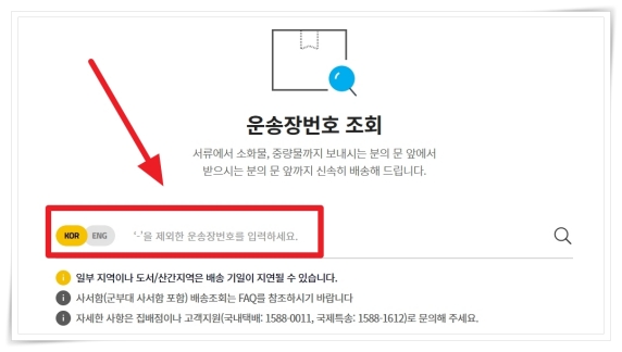 2. '-'를 제외한 운송장번호를 입력해 주세요.