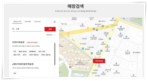 2. 매장명 검색, 주변매장, 지역 검색 방식으로 지도에서 매장을 찾으실 수 있습니다.