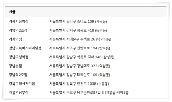 그런데 모바일 상품권은 일반매장에서는 사용할 수 없고 직영점에서만 사용이 가능한데요. 사용하기 전에 미리 매장을 확인하고 가셔야 시간 낭비를 막을 수 있습니다.