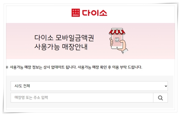 이번 포스팅은 다이소 직영점 찾기 방법을 알아볼게요. 천원 한 장으로도 꽤 넓은 선택을 할 수 있는 다이소는 이제 주변 어디서나 쉽게 볼 수 있죠. 1호점이 천호동에서 오픈한 후 현재 1,500개 이상의 매장이 전국이 들어섰습니다. 유튜브에서 보면 가성비 좋은 상품들을 많이 소개하는데요. 실제로 원가를 높이는 불필요한 거품과 군더더기를 제거해서 저렴한 가격에 질 좋은 상품을 쉽게 만날 수 있습니다. 저렴한 가격으로 최신 제품을 구매하려는 젊은 세대가 다이소에 몰리면서 10대들의 놀이터라는 평일 받고 있는데요. 얼마 전 젊은 세대의 발길을 붙잡기 위해 모바일상품권도 출시했는데요. 1,000원부터 시작해서 10만 원까지 총 6종의 상품권을 구매할 수 있습니다. 이 중 10000원권이 가장 많이 팔리는데요. 부담 없이 선물할 수 있는 가격이라 생각이 드네요.