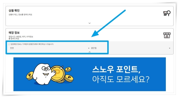 1. 홈페이지 상품 확인에서 지역 및 매장을 선택 후 상품명을 검색해 주세요.