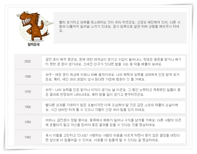 4. 그러면 태어난 연도에 맞게 오늘의 운세 풀이를 보실 수 있습니다.